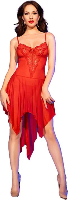 Ein verführerisches Babydoll in Rot, gefertigt aus transparentem Tüll mit romantischen Spitzenakzenten. Ideal für erotische Abende voller Flirt und Geheimnis.