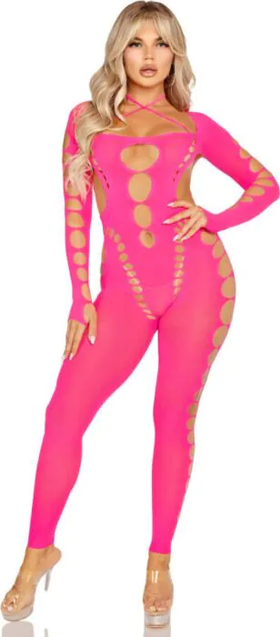 Dieser aufregende Bodystocking von Leg Avenue betont deine Kurven mit gewagten Schnitten und einer verführerischen Rückenöffnung. Ideal für jeden Körper und für aufregende Kombinationen.