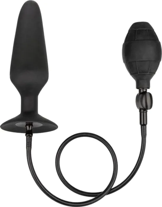 Großer, aufblasbarer Analplug aus nahtlosem Silikon von CALEXOTICS für Nutzer, die variable Weite wollen. Der Plug bleibt aufgeblasen, wenn du den Schlauch entfernst, und hat eine starke Saugglocke für freihändiges Spiel. Ein solides Sexspielzeug für Fortgeschrittene, das sich sowohl mit als auch ohne Harness verwenden lässt.