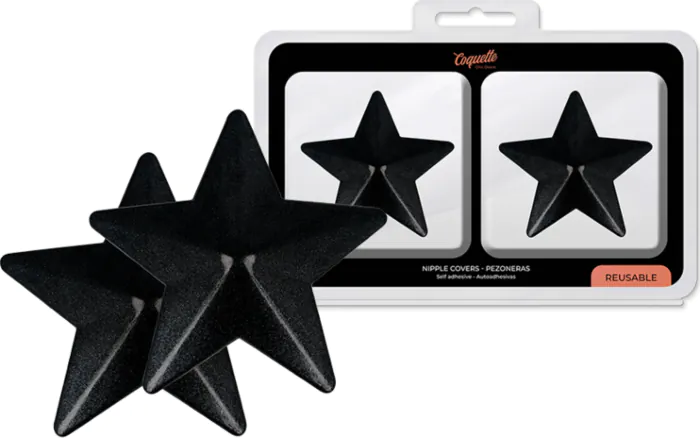 Coquette Chic Desire - Nippelabdeckungen mit schwarzen Sternen: Strahle mit eigenem Licht und stich bei jeder besonderen Gelegenheit mit diesen sinnlichen Nippelabdeckungen mit schwarzen Sternen hervor! Einfach anzubringen und wiederverwendbar, werden sie dich immer wieder einzigartig und besonders fühlen lassen. Aus hochwertigem Metall gefertigt, werden sie dich in ein Luxusgefühl hüllen, das deine Sinnlichkeit verstärkt. Bereit, zu glänzen? Platziere sie einfach über deine Nippel und mach dich bereit, mit Stil und Provokation zu strahlen. Lass deine Nippel die Hauptrolle spielen und traue dich zu glänzen mit Coquette Chic Desire!