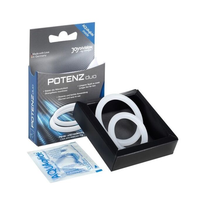 Potenz Duo Penisringe Medium: das Geheimnis, um deine intimen Momente auf ein neues Level zu heben! Dieses Set aus 2 konstriktiven Verstärkungsringen ist dein perfekter Verbündeter im Kampf gegen vorzeitige Ejakulation und für festere und langanhaltendere Erektionen. Das transparente Design verleiht eine Prise Sinnlichkeit, während die mittlere Größe eine bequeme und effektive Passform garantiert. Vergiss nicht, das enthaltene Aquaglide Gleitmittel für ein noch angenehmeres Erlebnis zu nutzen! Entdecke eine Welt intensiver Empfindungen und längere intime Begegnungen mit Potenz Duo. Dein Vergnügen verdient nur das Beste!