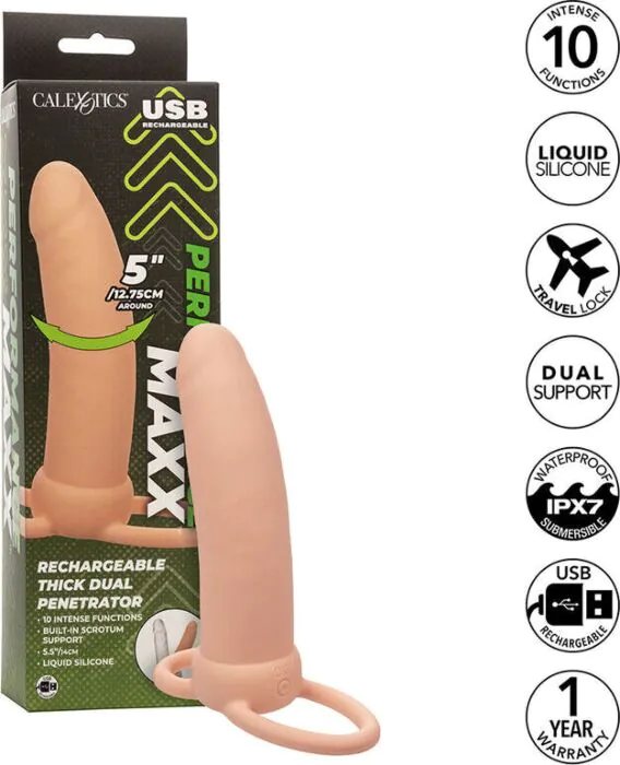 Intensive doppelte Penetration mit 10 kraftvollen Vibrationsmodi. Der CALEXOTICS Maxx Doppelte Penetrator vereint weiche, langlebige, IPX7 wasserdichte Silikonoberfläche mit einem komfortablen Design. Mit einem Durchmesser von 12,75 cm bietet er ein kraftvolles Erlebnis, das die Empfindungen intensiviert.