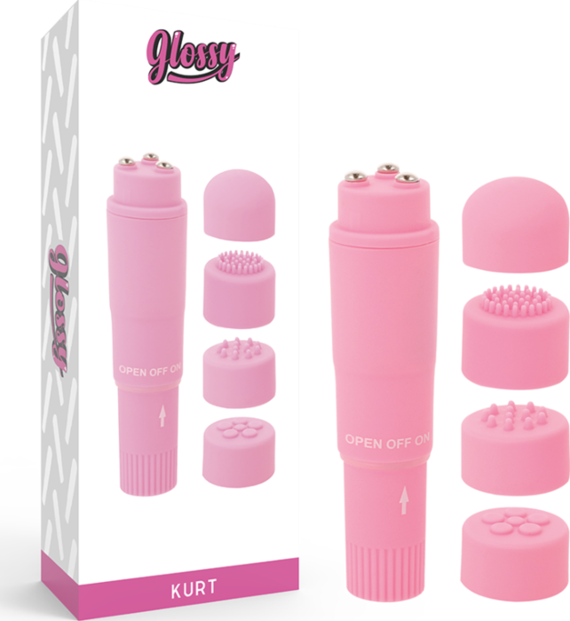Mini Vibrator GLOSSY Kurt mit vier wechselbaren Köpfen