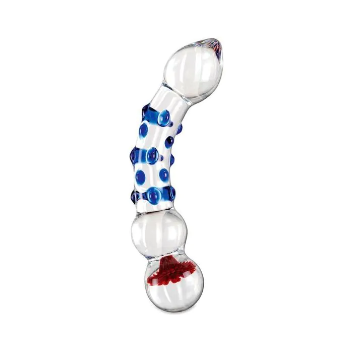Wie kann man auf dem Bild sehen, hat dieses luxuriöse Tröster eine Form, die eine Krümmung nach oben hat, die ausgelegt ist, den G-Punkt und anderen tiefen Bereichen zu stimulieren. Plus hat es einige Glasperlen entlang Ihrem Körper weiter zu stimulieren , wenn Penetration mit seinen 16,5 x 3,5 cm. Und wir können nicht die Blume Detail in den letzten Ball des Dildo gefunden vergessen, die eine luxuriöse Note.