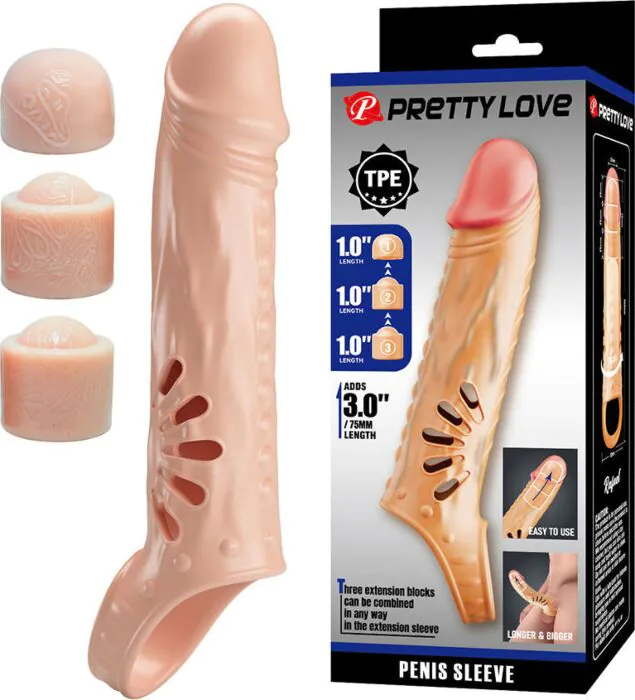 Erlebe ein intensiveres Erlebnis mit der eleganten Hülle von Pretty Love. Dank der 3 abnehmbaren Verlängerungen kannst du die Länge nach deinen Wünschen anpassen.
