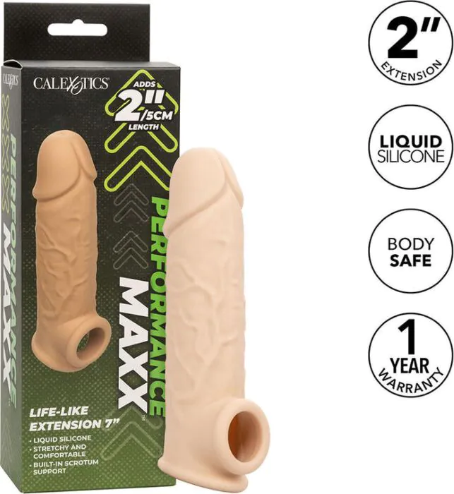 Erlebe eine neue Dimension der Lust mit der PERFORMANCE MAXX von CALEXOTICS. Die realistische, hohle Hülle sorgt für zusätzliche 5 cm Länge und bietet dank der integrierten Stützgurt ein intensives Erlebnis für beide Partner.