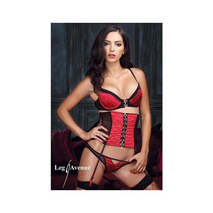 Leg Avenue Set aus BH, Strumpfband und String corse-rotem Satin