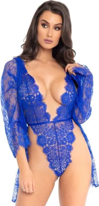 Lingerie Set Leg Avenue Teddy und Robe M mit floralem Design