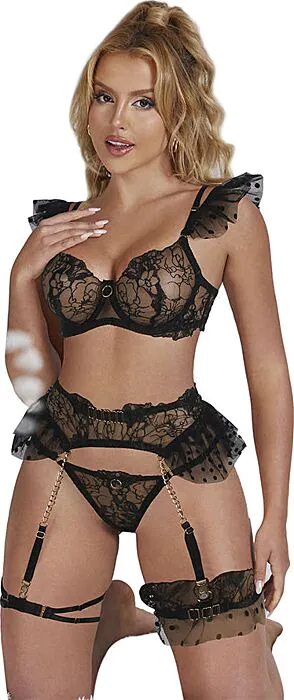 Das Set besteht aus einem Spitzen-BH mit verstellbaren Trägern und einem passenden Panty. Die feinen Details und die bequeme Passform machen es empfehlenswert für besondere Anlässe. Kombiniere es mit einem geeigneten, wasserbasierten Gleitmittel für zusätzlichen Komfort.