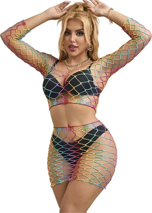 Fühle dich sexy und selbstbewusst in diesem zweigeteilten Lingerie Set von SUBBLIME, das mit einem lebhaften Regenbogenmuster begeistert. Hergestellt aus 88% Nylon und 12% Spandex, bietet es ein elastisches und bequemes Tragegefühl, während das luftige Netzdesign für eine angenehme Atmungsaktivität sorgt.