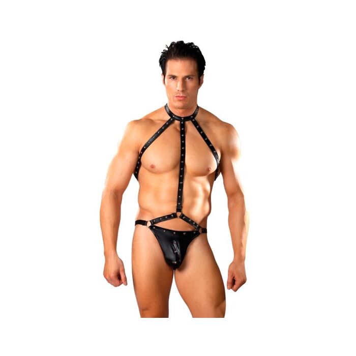 MÄNNLICHE KRAFT FETISCH GLADIATOR SCHWARZ . Dieser exotische Stil mit verschiedenen Eigenschaften, Tanga aus Leder mit 4 verschiedenen Verlängerungen und Riemen auf der Rückseite, verziert mit Nieten und dekorativen Ringen. Wählen Sie diejenige aus, die Ihnen am besten gefällt, und überraschen Sie Ihren Partner.