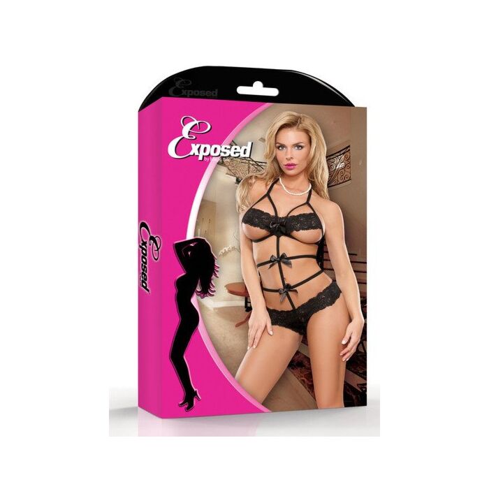 Grand-Magie Silk Exposed Sammlung kommt dieser Körper schwarzen Teddy zusammen mit Bändern und Bögen und rückenfrei zusammen durch Streifen aus Spitzenhöschen, die Sie sexier zu fühlen.