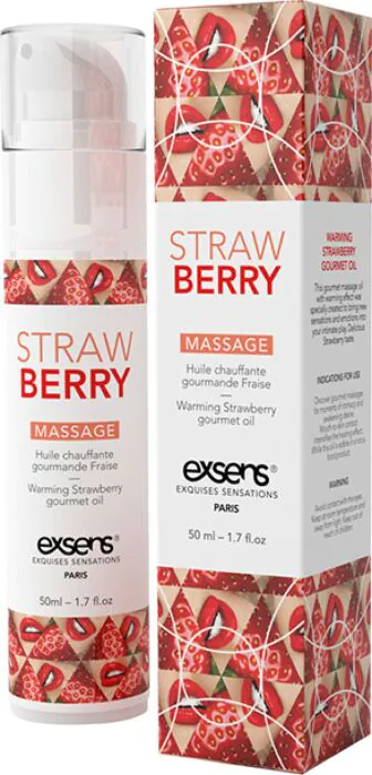 Massageöl von Exsens mit wärmendem Effekt und Erdbeeraroma