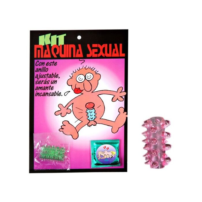Kit bestehend aus einem Latex - Kondom und einen Ring für den strukturierten Penis.
