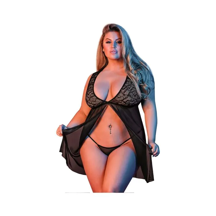 Sexytime - Babydoll mit Frontöffnung - schwarz