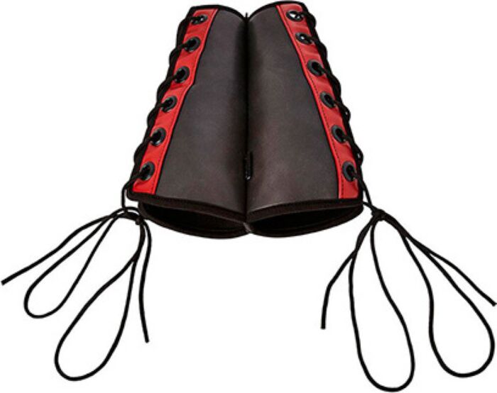 Elegante und komfortable Fesseln für aufregende Bondage-Spiele. Die Saffron Gauntlet Cuffs sind aus einem hochwertigen Materialmix gefertigt, das sowohl strapazierfähig als auch weich ist. Mit einem stilvollen schwarz-roten Design und einem durchdachten Anpassungssystem sind sie empfehlenswert für Paare, die ihre Fantasien erkunden möchten.
