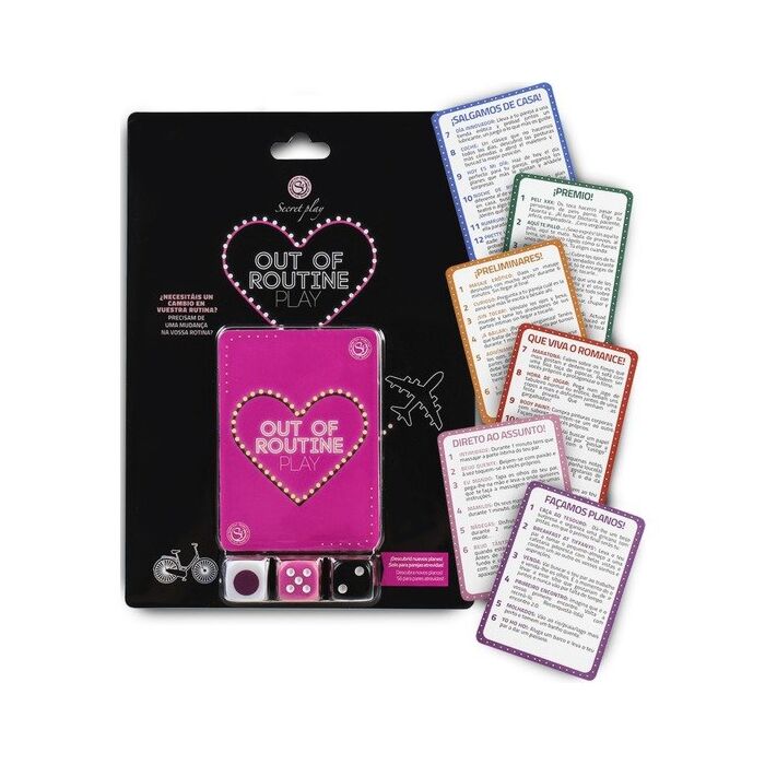 ¡Bringen Sie frischen Schwung in Ihr Intimleben mit dem aufregenden Spiel "Out of routine play" von Secret Play! Entfachen Sie die Leidenschaft und brechen Sie gemeinsam mit Ihrem Partner die Monotonie. Sind Sie bereit, neue Erfahrungen zu entdecken und sich auf spannende Herausforderungen zu freuen? Werfen Sie die Würfel und tauchen Sie ein in eine Welt voller Spaß und Leidenschaft!