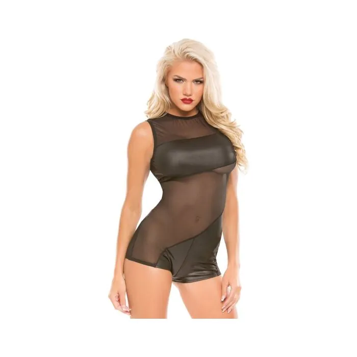Wetlook & Spitzenspielanzug mit Transparentfolien